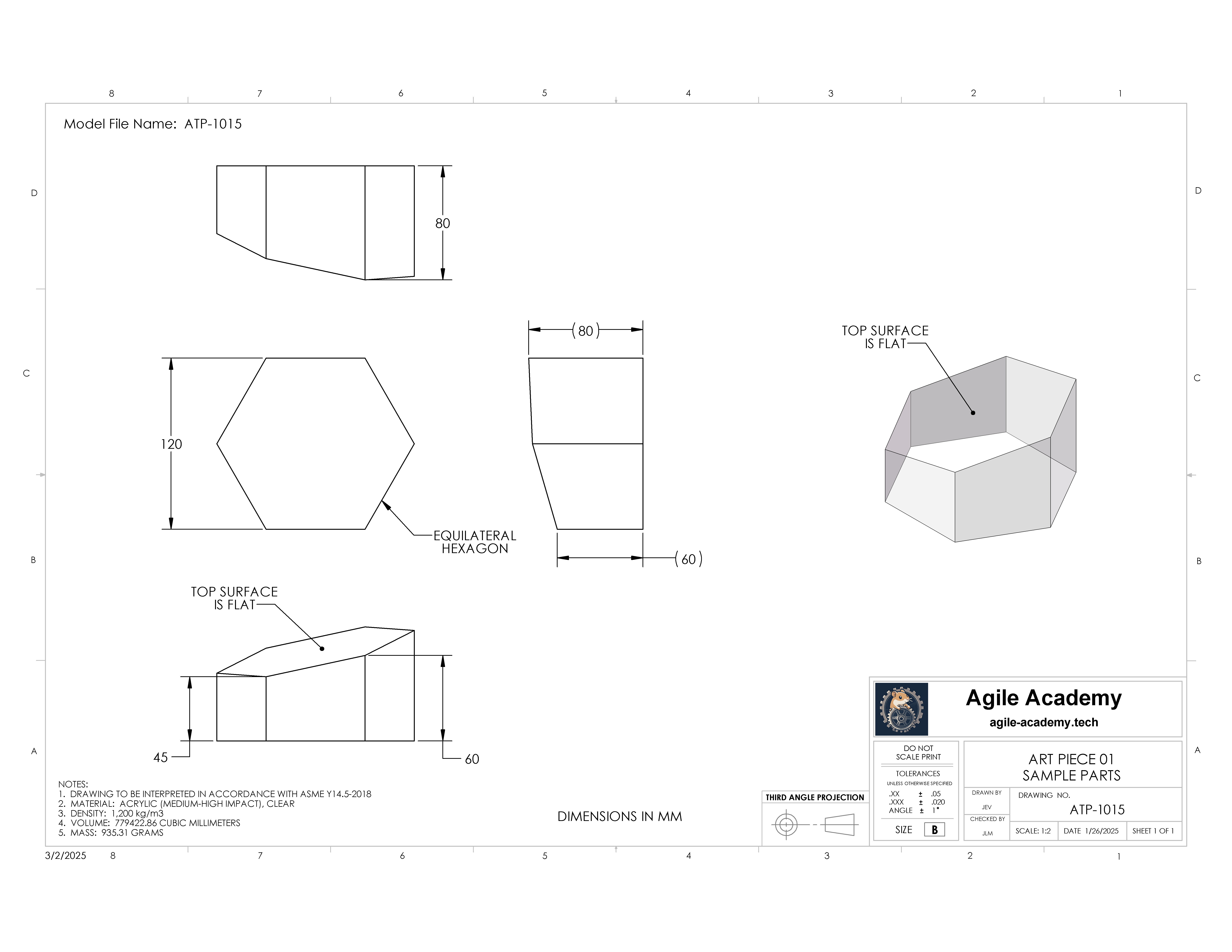 This is an acrylic art piece drawn in millimeters. It is made of Acrylic (Medium-High Impact) with a density of 1,200 kg per cubic meter.